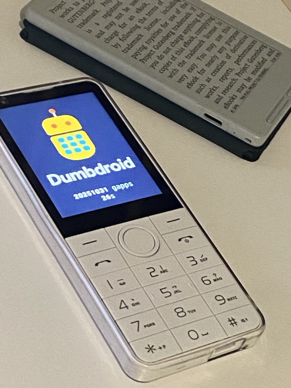 My right pocket used to be for my iPhone, it's now for my dumbdroid and a tiny ereader called the xteink x4. If I reach for something to pass the time when I'm out and about I now only have the options of contacting friends or reading a book. I really like that choice. I find these devices go very well together.